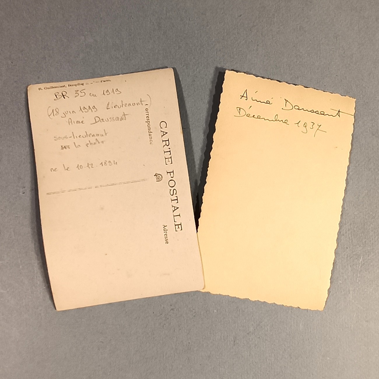 ENSEMBLE DE 2 PHOTOS CPA D'UN PILOTE D'AVIATION GUERRE 1914 - 1918 SPA 35 ET COMMANDANT EN 1937 AIME DAUSSANT