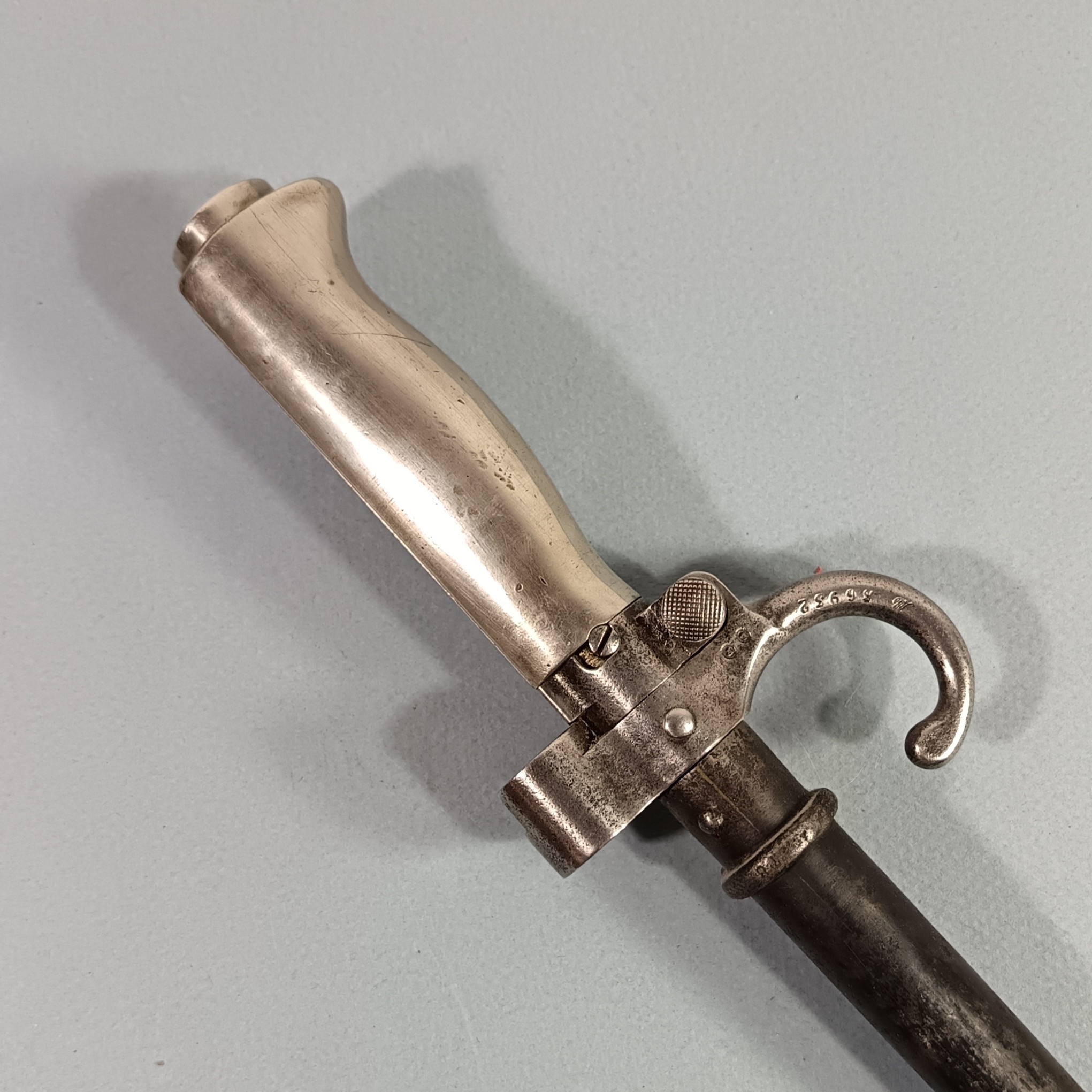 BAIONNETTE LEBEL MODELE 1886 PREMIER TYPE AVEC QUILLON POIGNEE MAILLECHORT "LA ROSALIE" GUERRE 1914 1918 AVEC SON CUIR