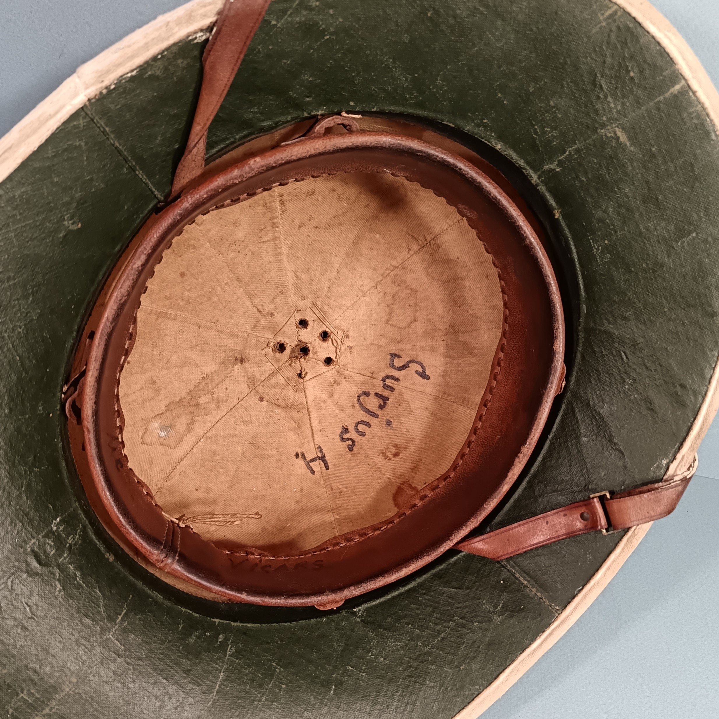 CASQUE COLONIAL EN TOILE BLANCHE ET LIEGE DE TYPE ANGLAIS FABRICATION FRANCAISE OU ANGLAISE MILITAIRE ARMEE DE LIBERATION FNFL