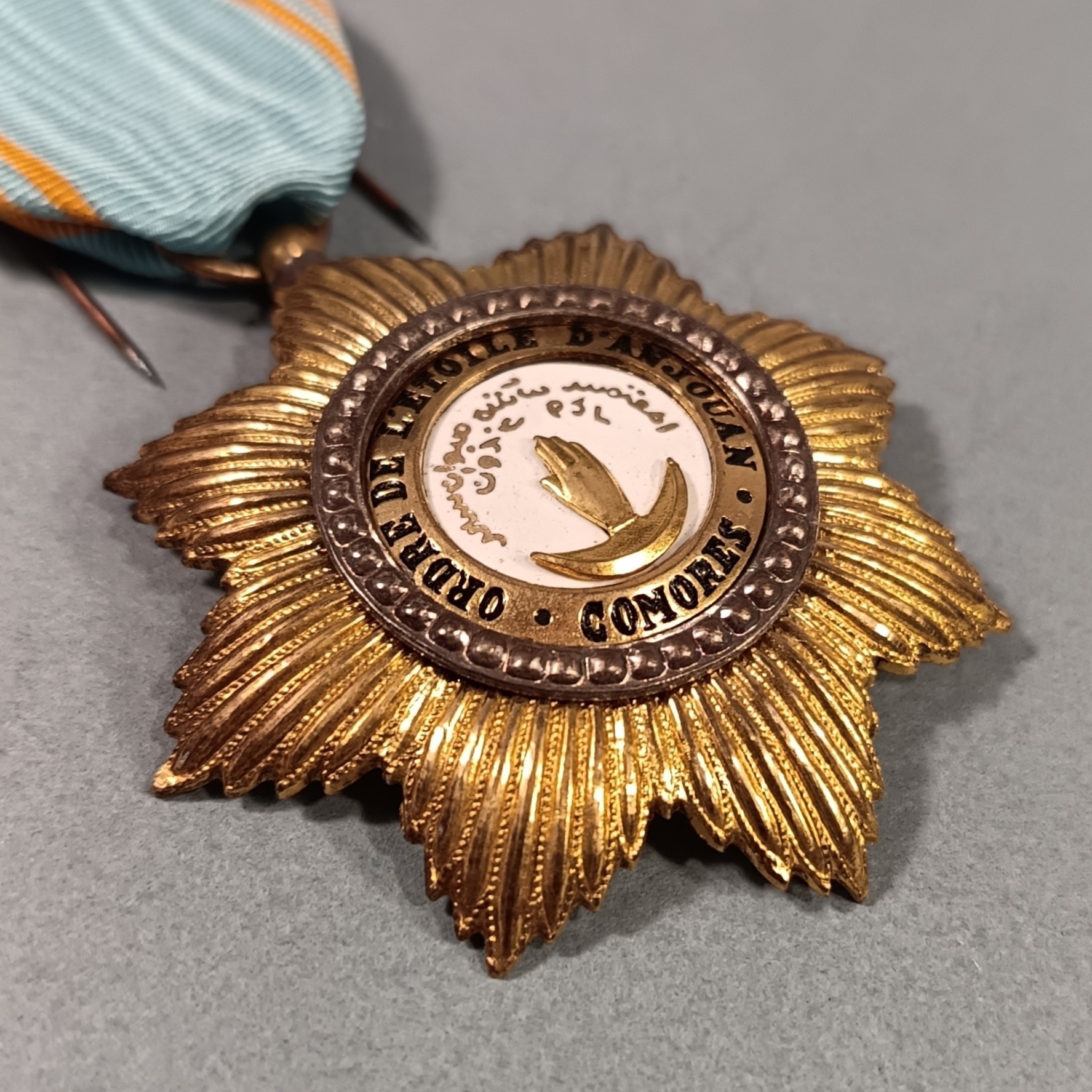 COMORES MEDAILLE DE CHEVALIER DE L'ORDRE ROYAL DE L'ETOILE D'ANJOUAN FABRICATION ANCIENNE EN BOITE CARTON