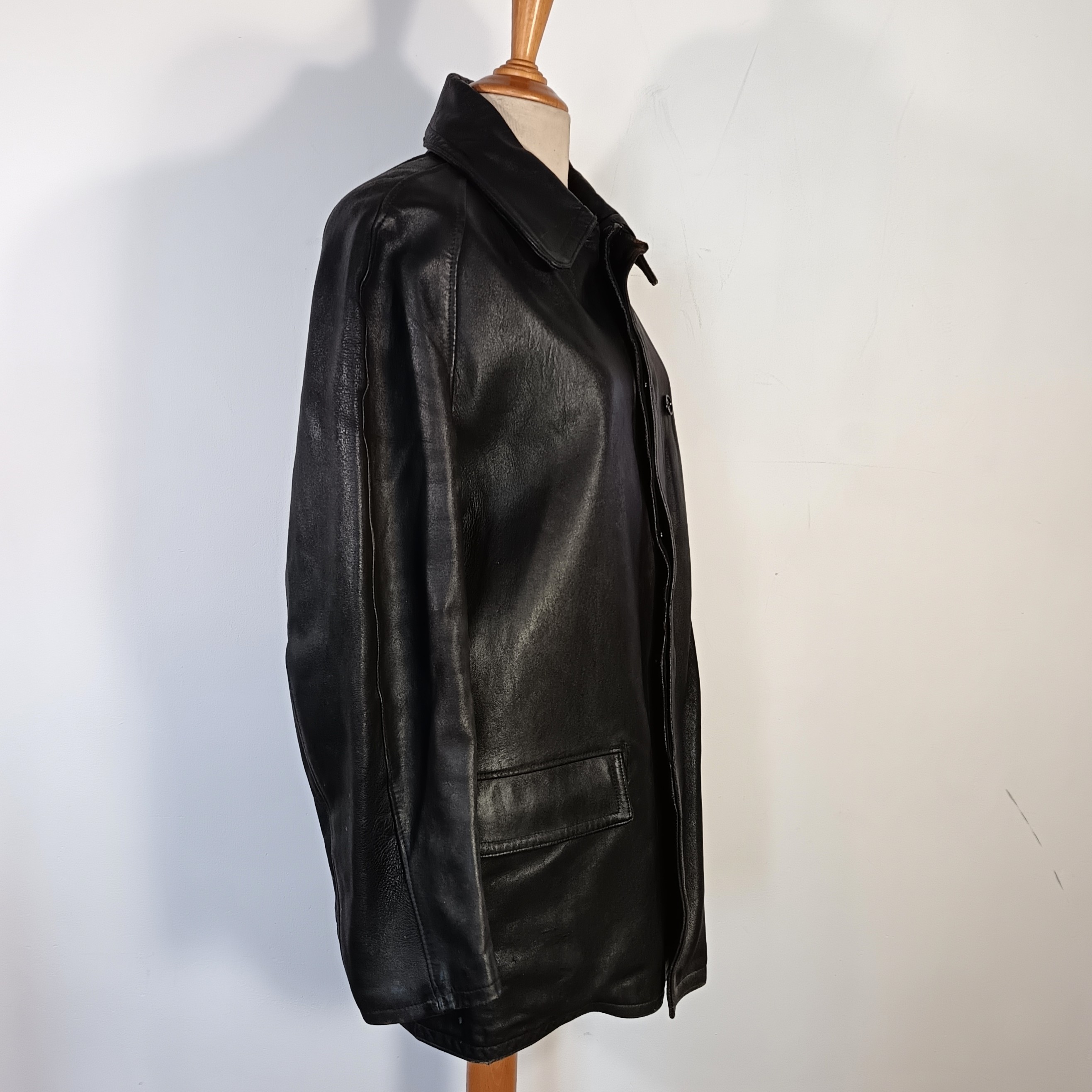 VESTE MILITAIRE EN CUIR NOIR DE GENDARME OU SAPEURS POMPIERS ANNEES 1950 1960