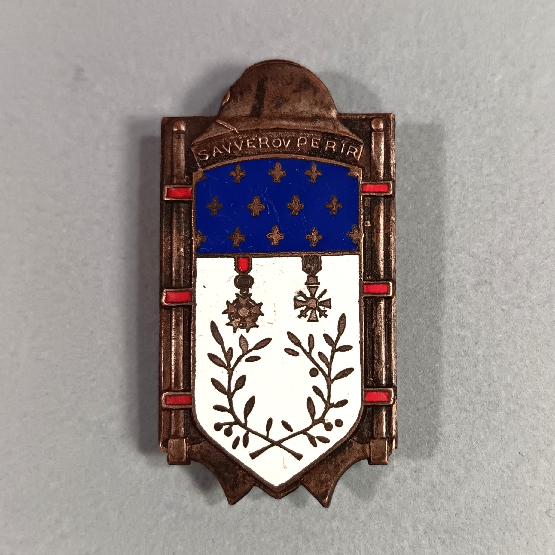 INSIGNE MILITAIRE SAPEURS POMPIER BATAILLON DE LA VILLE DE REIMS FABRICATION DES ANNEES 1940