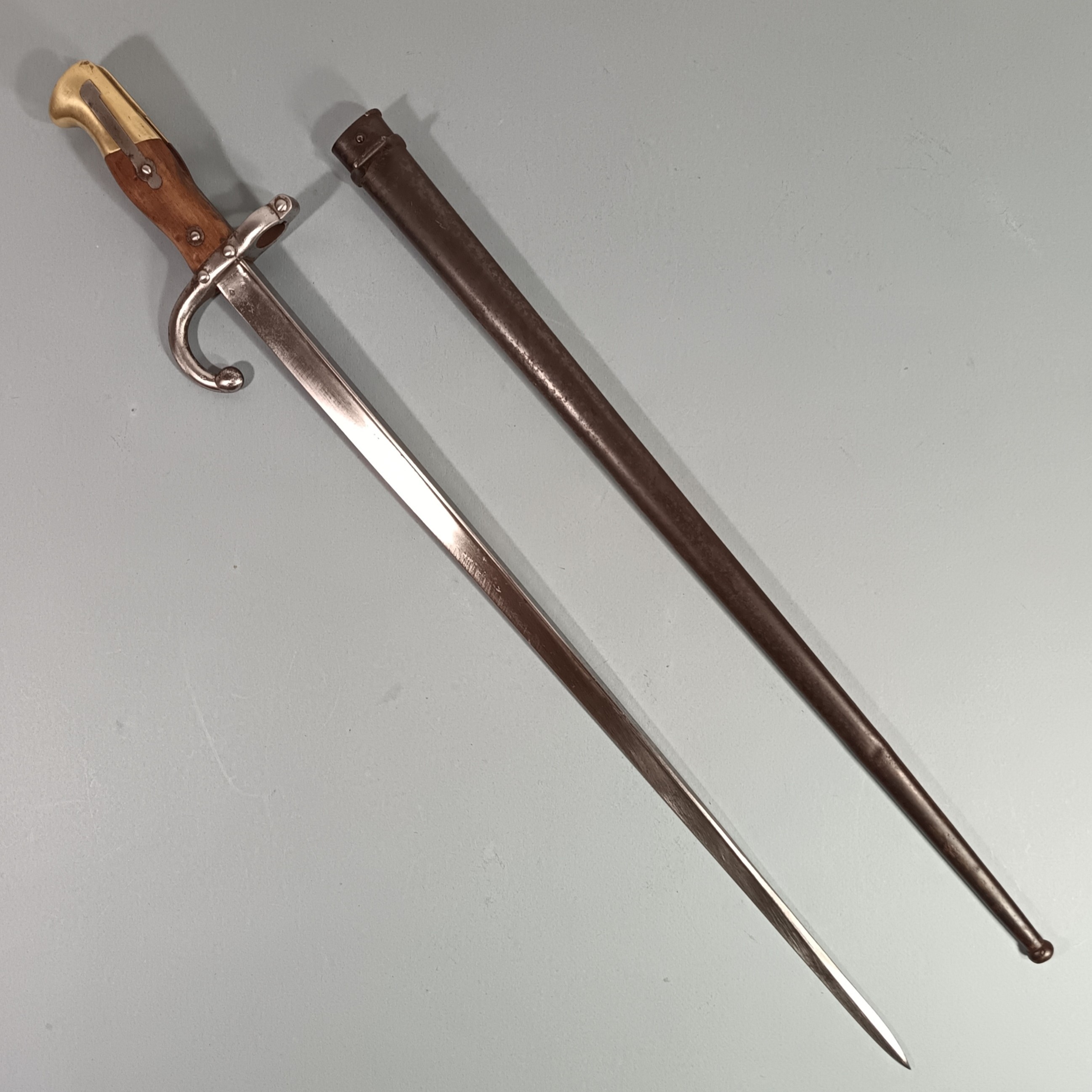 BAIONNETTE POUR FUSIL GRAS FRANCAIS MODELE 1874 BAIONNETTE ET FOURREAU AU MEME NUMERO LAME MARQUEE DE LA MANUFACTURE D'ARMES DE ST ETIENNE OCTOBRE 1879