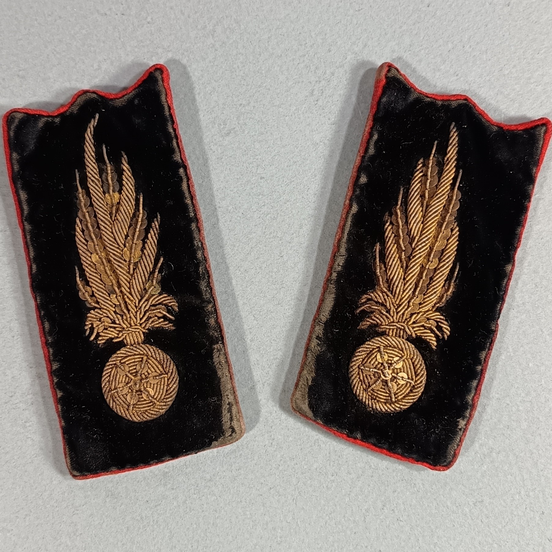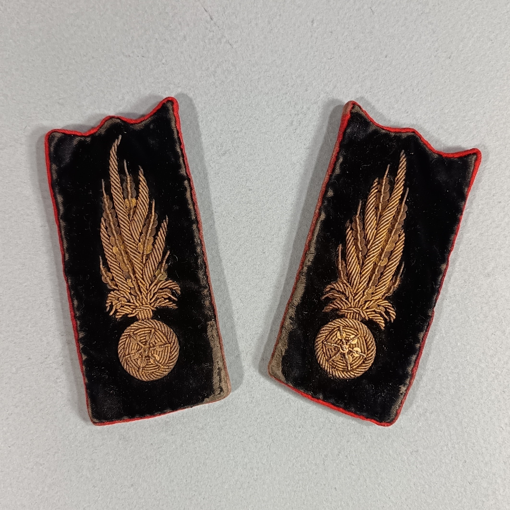 PATTES DE COL VESTE MODELE 1880 POUR UN OFFICIER DU GENIE MILITAIRE OU DES SAPEURS POMPIERS CANNETILLE ARGENT SUR FOND DE VELOURS ET BORDURES ROUGES