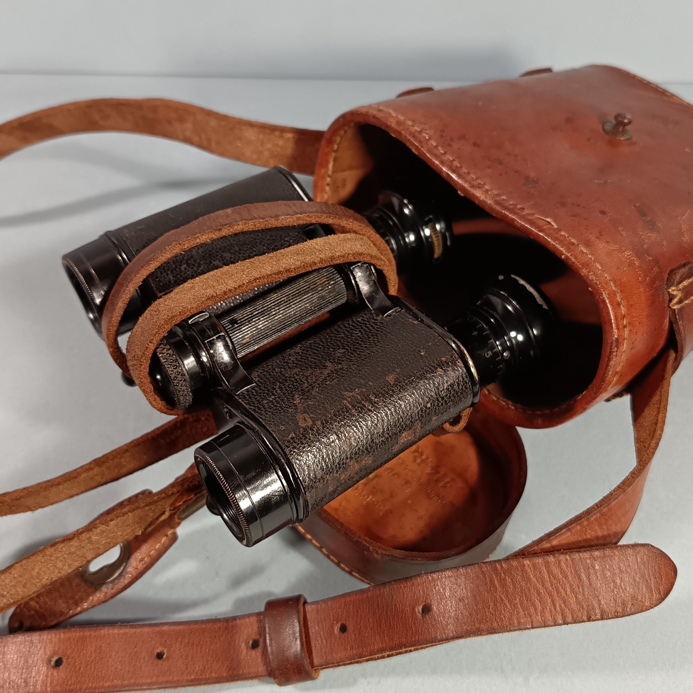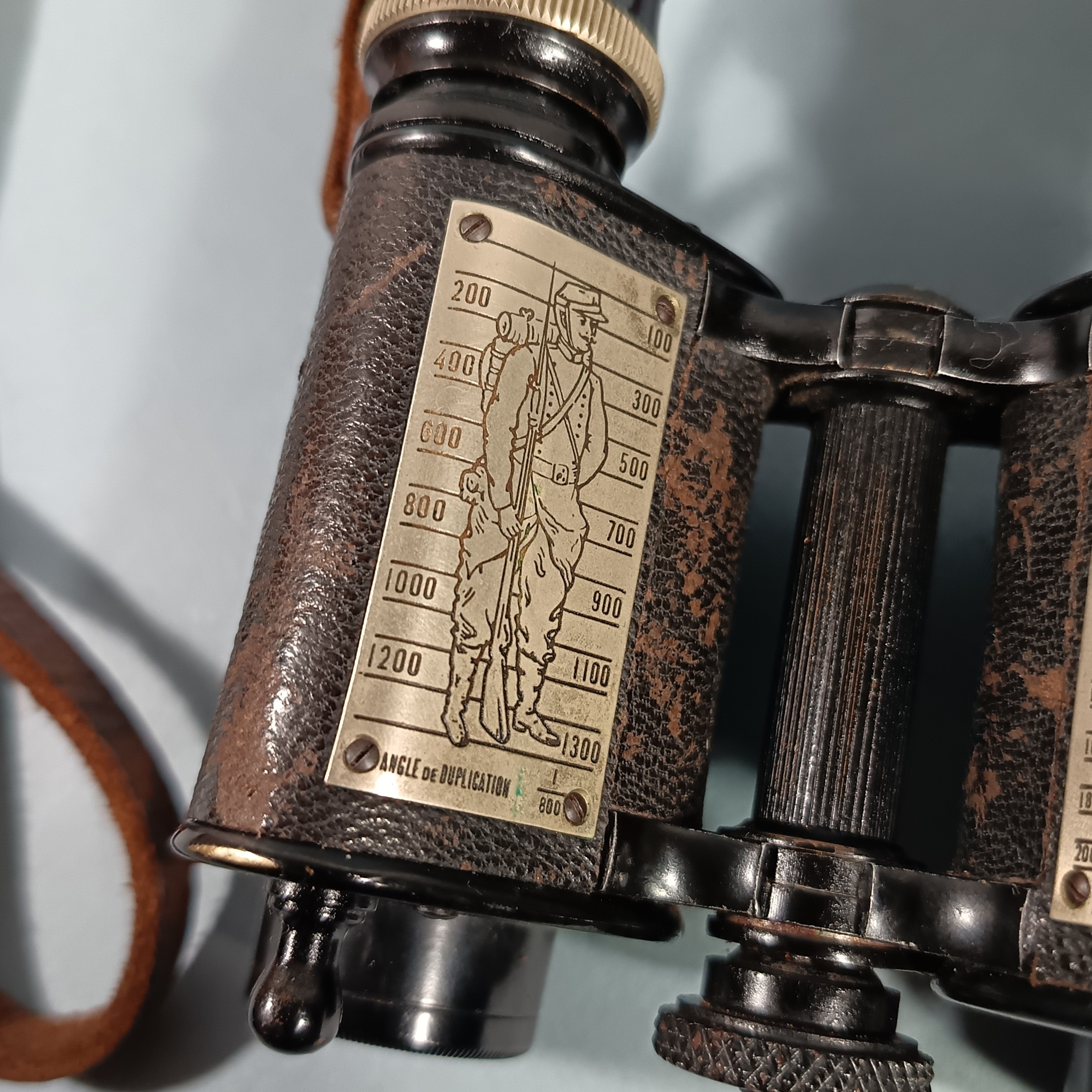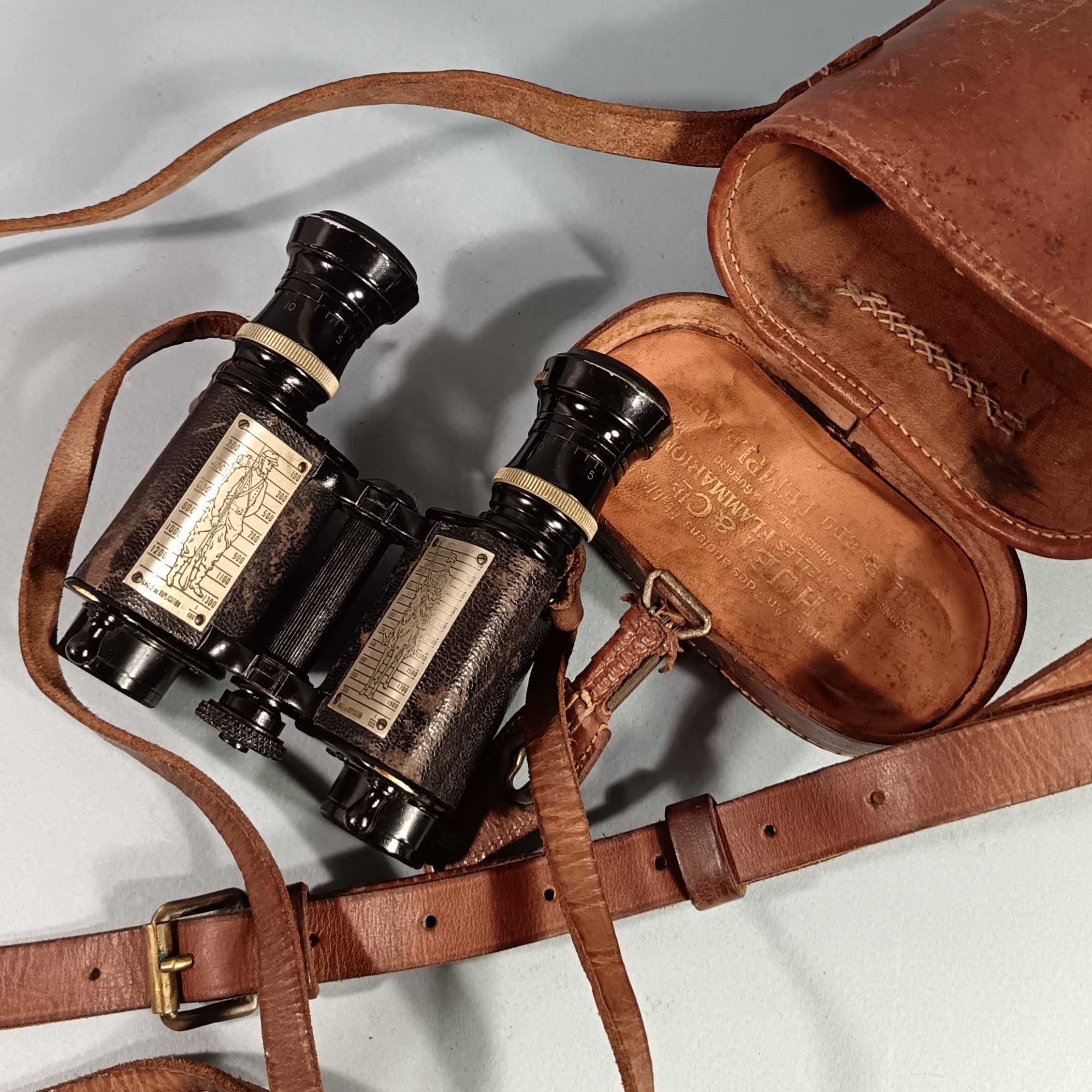 PAIRE DE JUMELLES D'OFFICIER 1914 1918 AVEC SILHOUETTES GRADUEES DE CAVALIER ET DE FANTASSIN MINISTERE DE LA GUERRE FABRICATION HUET & CIE PARIS M.G. 22532