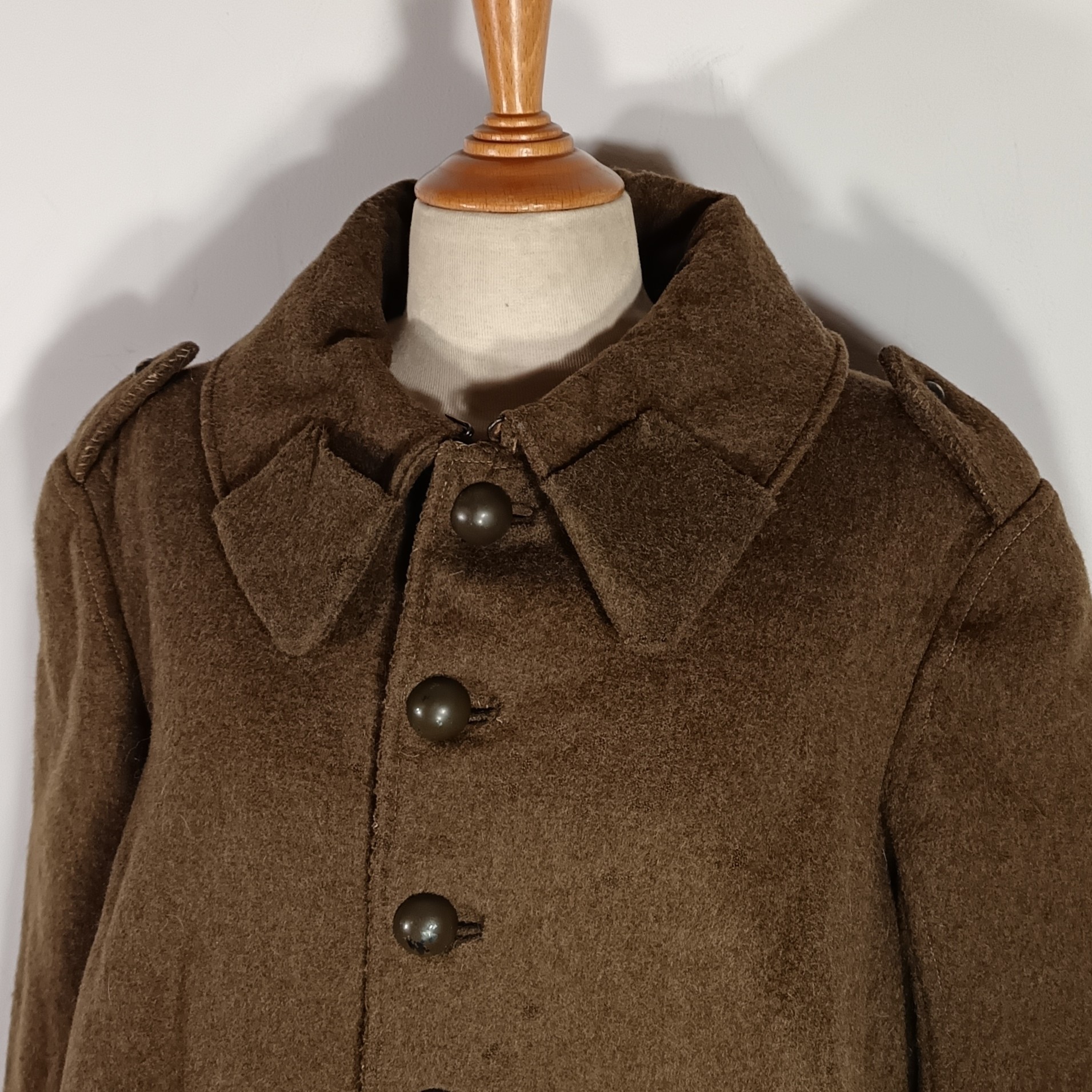 MANTEAU OU CAPOTE TROUPES MONTEES MODELE 1920-1935 DRAP TROUPE KAKI BOUTONS KAKIS POUR UN CAPITAINE D'ETAT MAJOR VOLETS POUR CACHER LES PATTES DE COL TAMPON DATE 1939