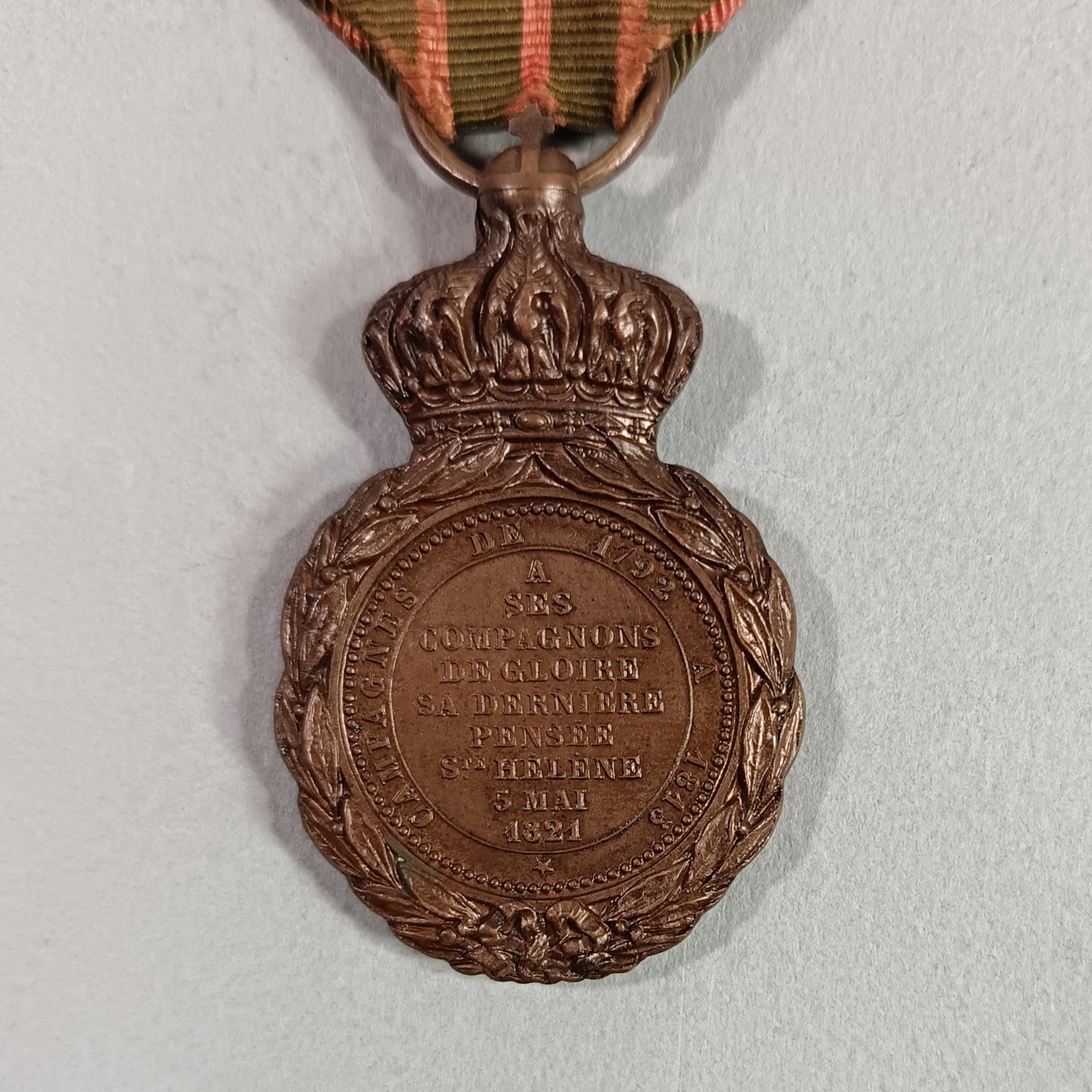 MEDAILLE DE STE HELENE NAPOLEON Ier 1821 A SES COMPAGNONS DE GLOIRE SOUVENIR DES CAMPAGNES DU PREMIER EMPIRE GRANDE ARMEE RUBAN D'ORIGINE