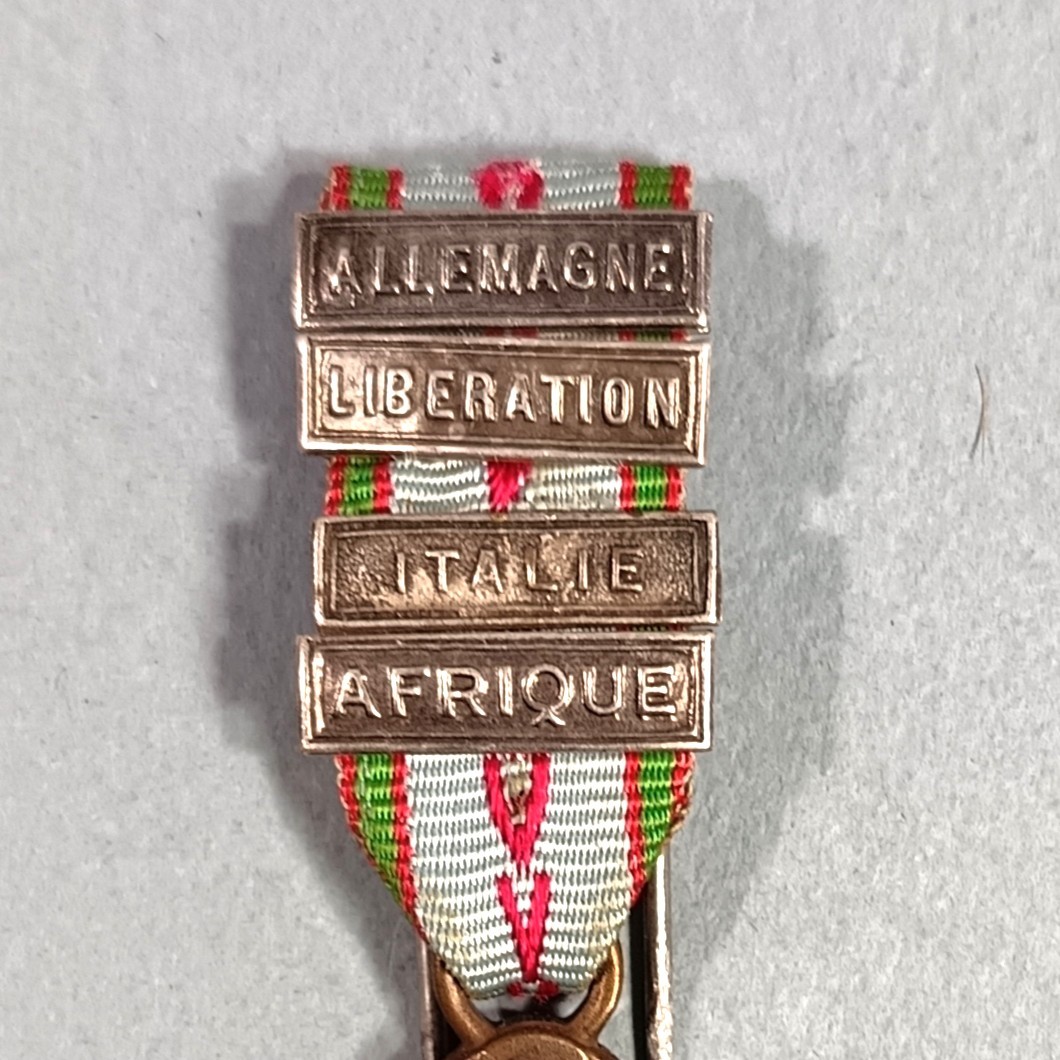 FRANCE REDUCTION DE LA MEDAILLE COMMEMORATIVE DE LA GUERRE 1939 1945 AVEC 4 BARRETTES LIBERATION AFRIQUE ITALIE ALLEMAGNE