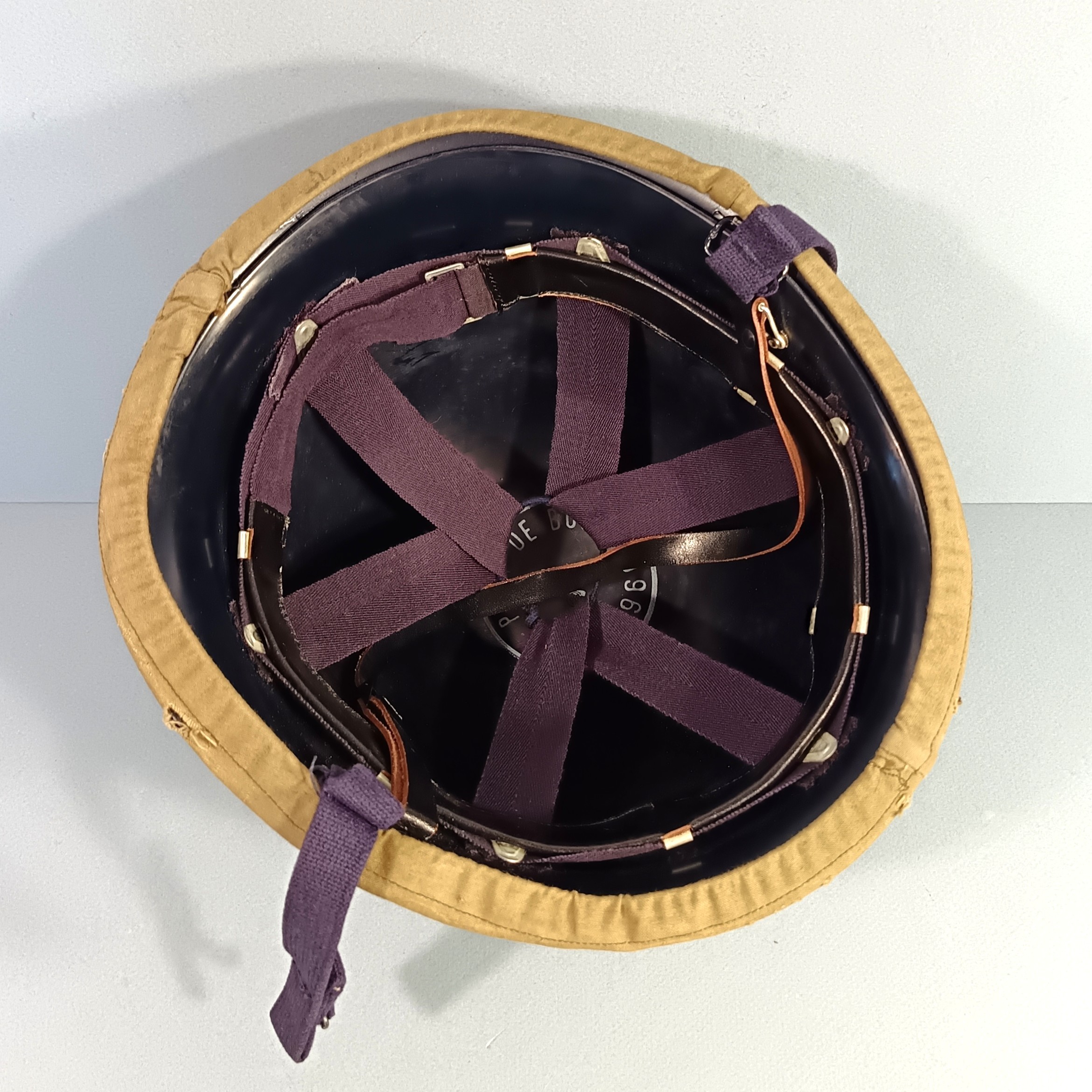CASQUE MODELE 1951 DE GENDARMERIE NEUF DE STOCK GRENADE DOREE LINER DATE 1966 AVEC SON COUVRE CASQUE GENDARME MOBILE